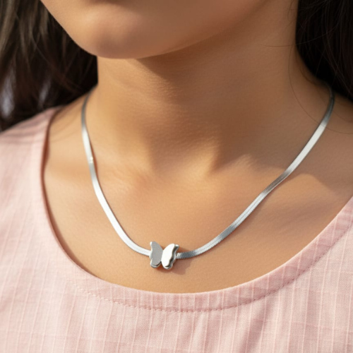 This necklace features a sleek snake chain paired with a minimal butterfly pendant, available in silver and gold finishes. The butterfly, a symbol of freedom, hope, and transformation, makes this necklace not just an accessory but a meaningful keepsake.